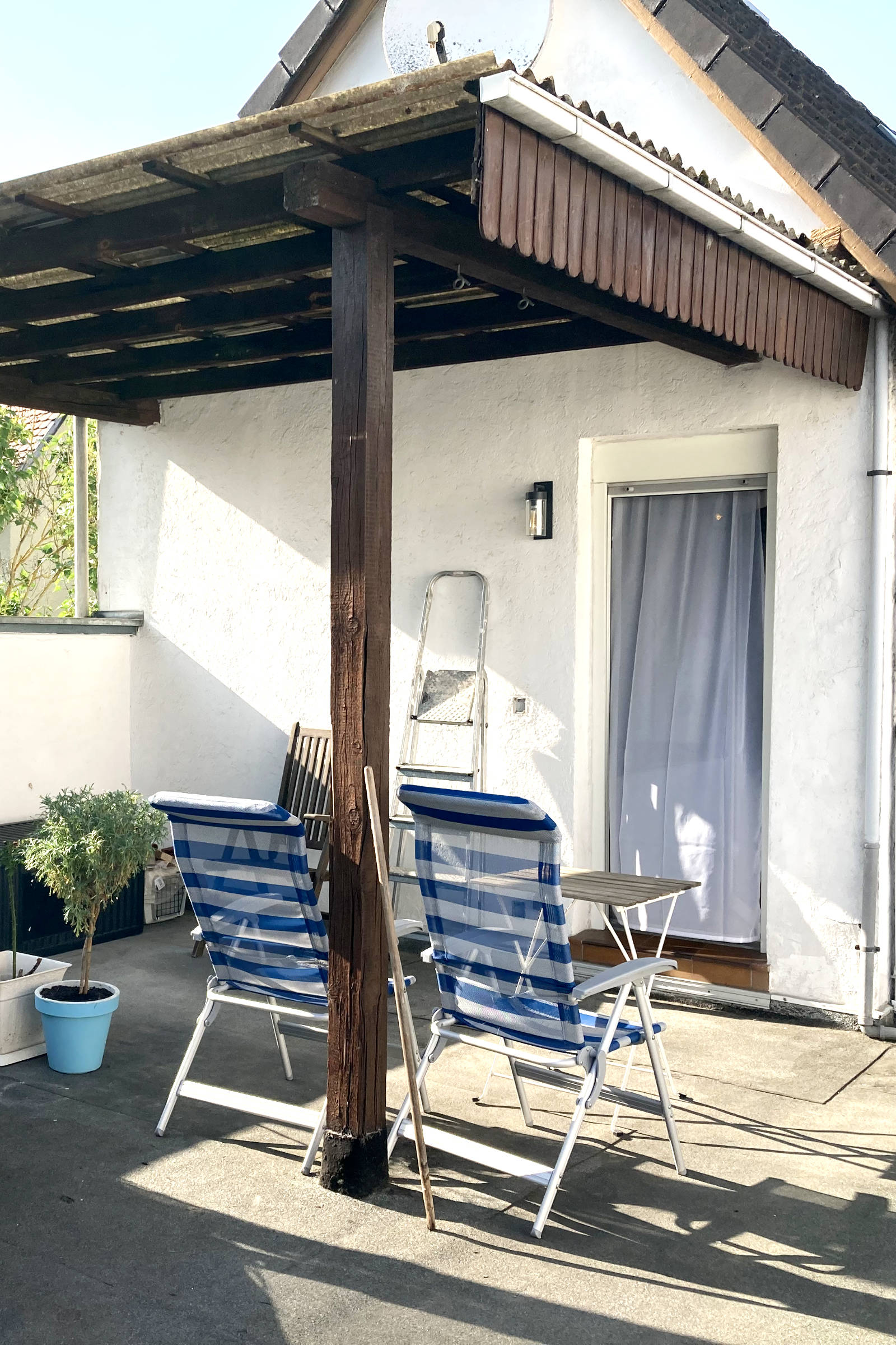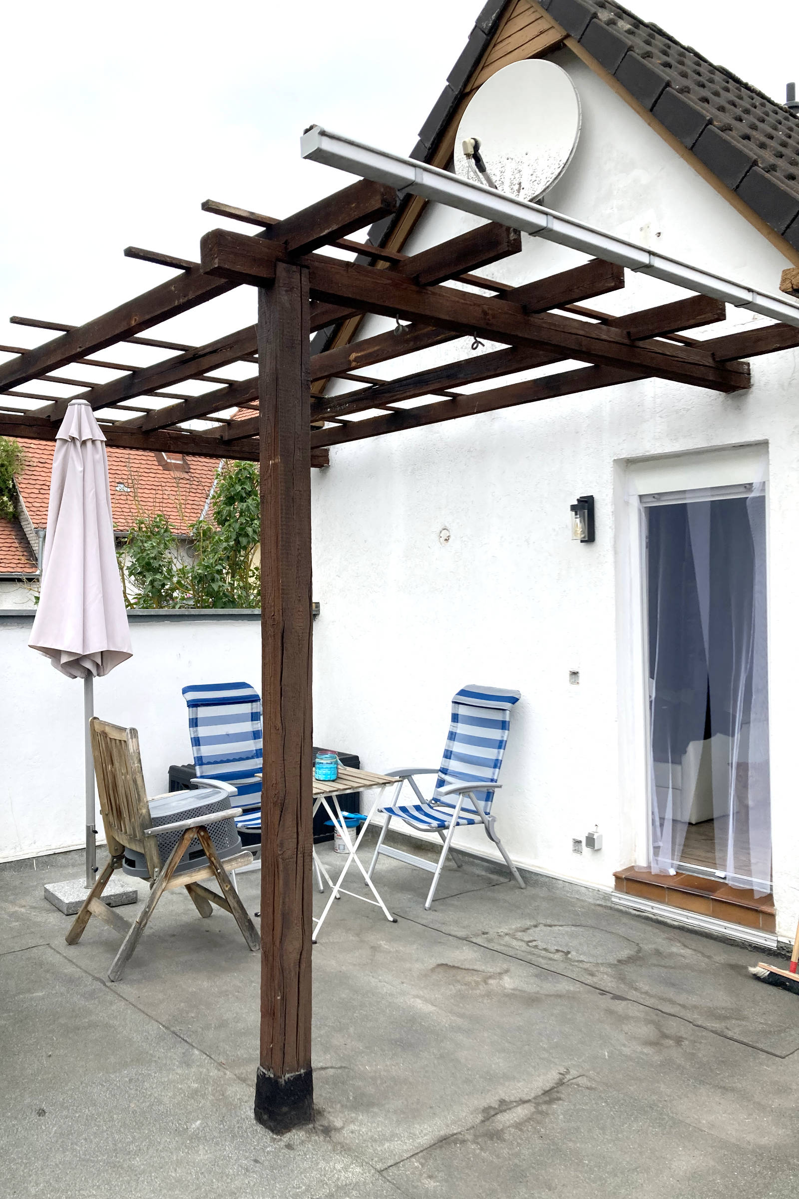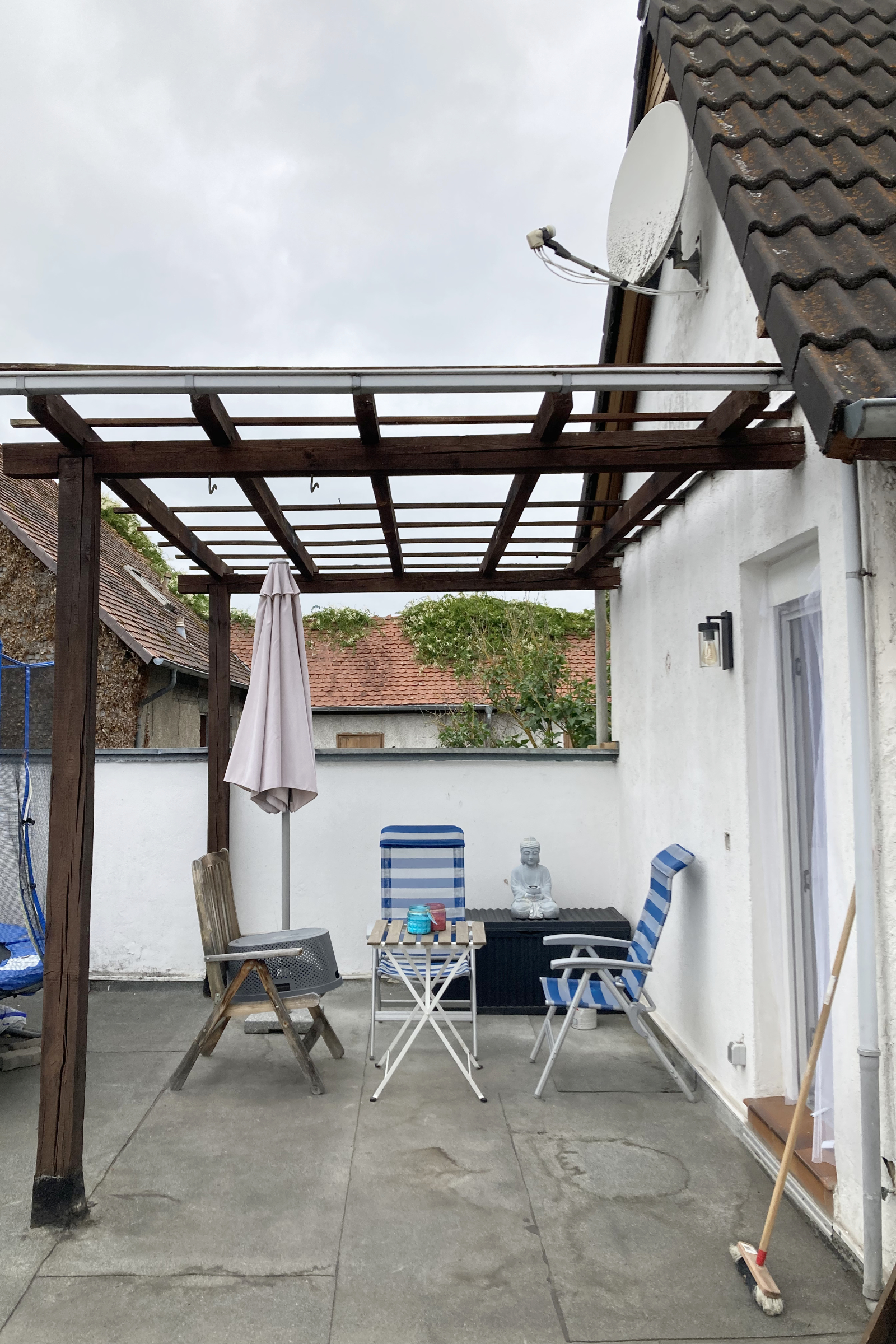 Manchmal gibt es diese Ecken, an denen man täglich vorbeiläuft und denkt: „Da müsste man eigentlich mal…“ – und genau so ein Bereich war dieser kleine, unscheinbare Hofbereich: ungemütlich, wenig einladend und ehrlich gesagt einfach ein optischer Schandfleck. Aus genau dieser Ecke ist in Eigenleistung ein völlig neuer Lieblingsplatz entstanden: eine kleine, gemütliche Terrassenlounge – fast schon eine kleine VIP-Ecke zum Abschalten, Ankommen und Genießen. Gib hier deinen Absatz ein