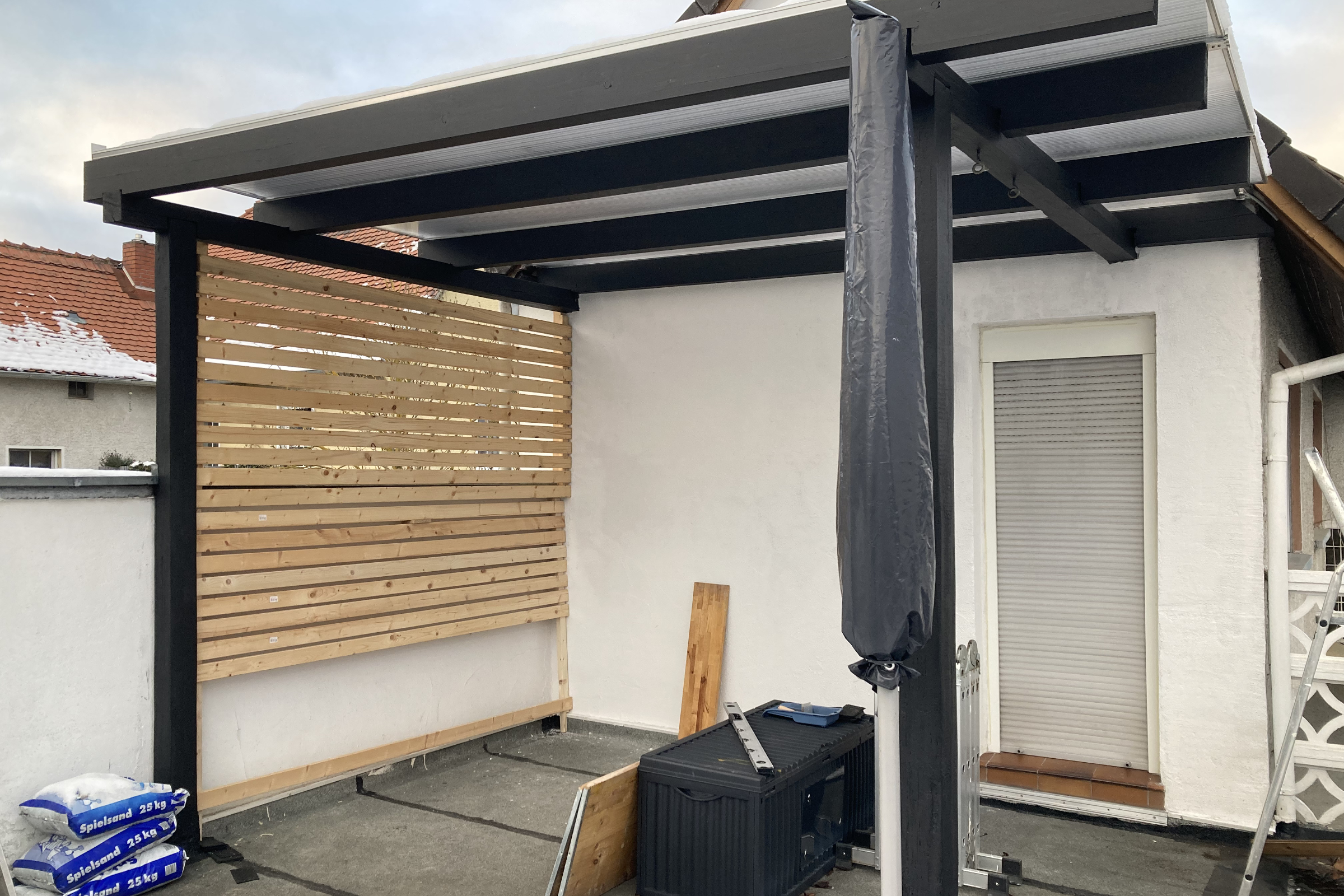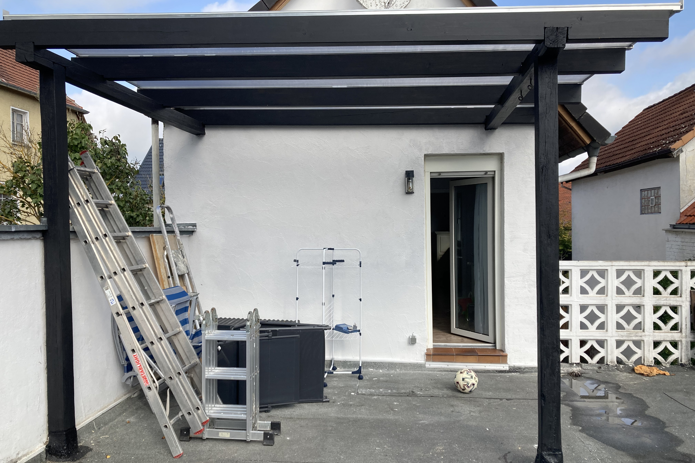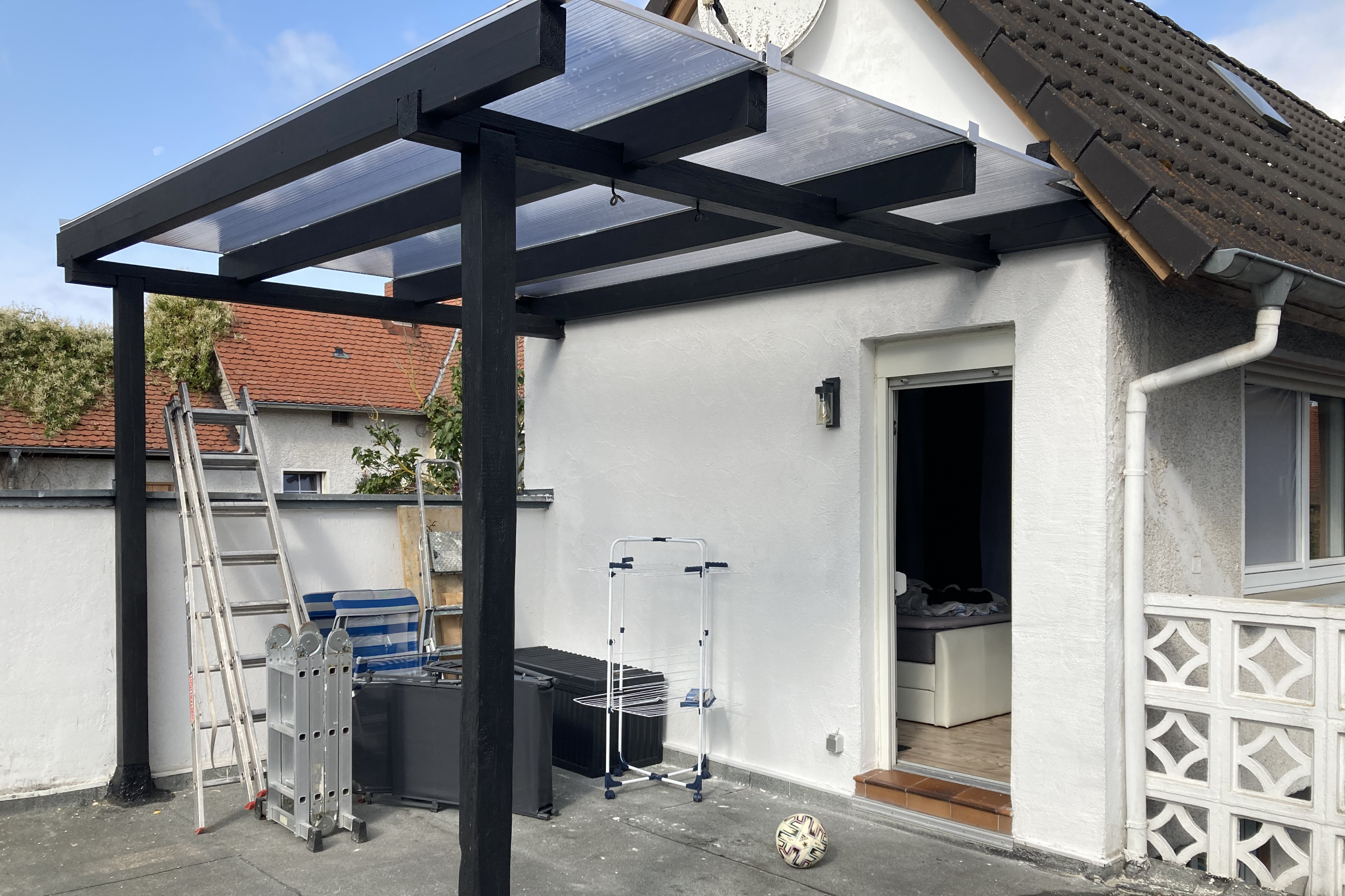 Manchmal gibt es diese Ecken, an denen man täglich vorbeiläuft und denkt: „Da müsste man eigentlich mal…“ – und genau so ein Bereich war dieser kleine, unscheinbare Hofbereich: ungemütlich, wenig einladend und ehrlich gesagt einfach ein optischer Schandfleck. Aus genau dieser Ecke ist in Eigenleistung ein völlig neuer Lieblingsplatz entstanden: eine kleine, gemütliche Terrassenlounge – fast schon eine kleine VIP-Ecke zum Abschalten, Ankommen und Genießen. Gib hier deinen Absatz ein